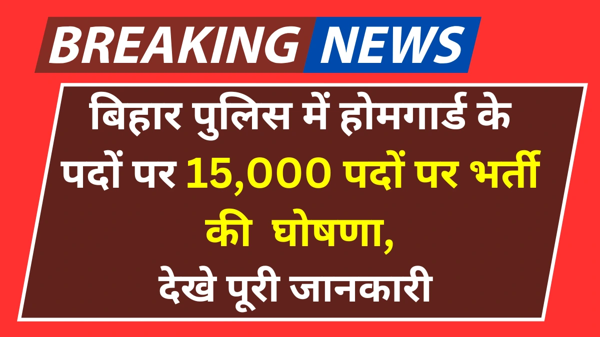 Bihar Home Guard Bharti 2025: बिहार पुलिस में होमगार्ड के पदों पर भर्ती होने जा रही है, और यह बिहार के उन उम्मीदवारों के लिए एक बड़ी खुशखबरी है जो पुलिस विभाग में नौकरी पाने का सपना देखते हैं। बिहार पुलिस ने होमगार्ड के कुल 15,000 पदों पर भर्ती का ऐलान किया है। इस भर्ती का प्रस्ताव जिलेवार वैकेंसी रोस्टर के साथ भेजा जा चुका है, और अब इस भर्ती की प्रक्रिया शुरू हो गई है। जल्द ही इस भर्ती के लिए आधिकारिक नोटिफिकेशन भी जारी किया जाएगा। भर्ती के लिए प्रारूप भी मांगा गया है, जिसका मतलब है कि भर्ती की प्रक्रिया बहुत जल्द शुरू होने वाली है।